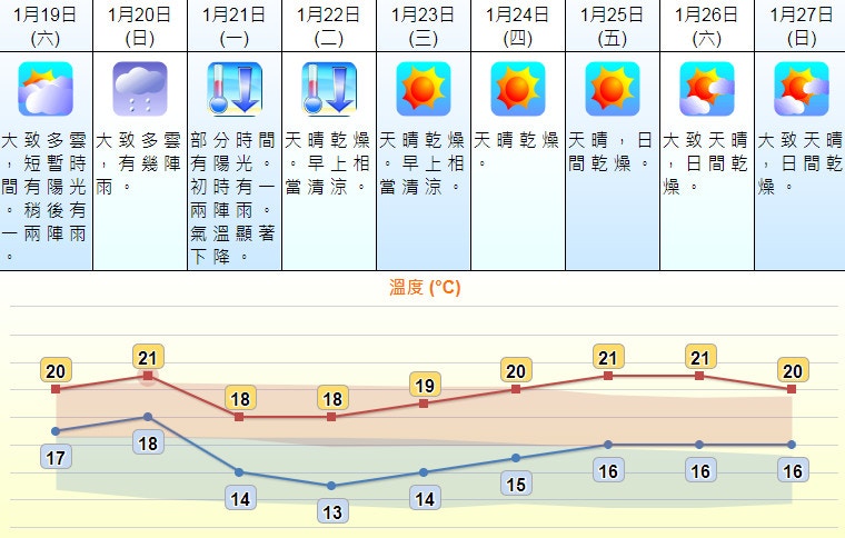 天文台預測1 月7 日至8 日氣溫或跌穿10 度 Ezone Hk 網絡生活 生活情報 D171229