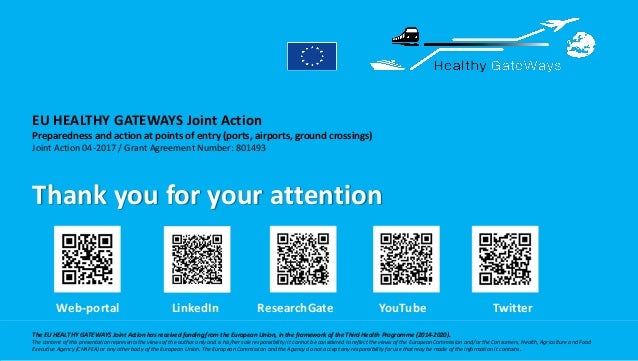 EU HEALTHY GATEWAYS secures the personally identifiable information you provide on computer servers in a controlled secure environment protected from unauthorized access use or disclosure. The Joint Action EU HEALTHY GATEWAYS is funded by the European Union under the Third Health Programme 2014-2020 and specifically falls under thematic priority 22 of Annex I of the 2017 Annual Work Programme. The Joint Action Preparedness and action at points of entry ports airports and ground crossings with acronym HEALTHY GATEWAYS was prepared under the framework of the 2017 Annual Work Programme and has received funding from the European Union in the framework of the Third Health Programme 2014-2020.