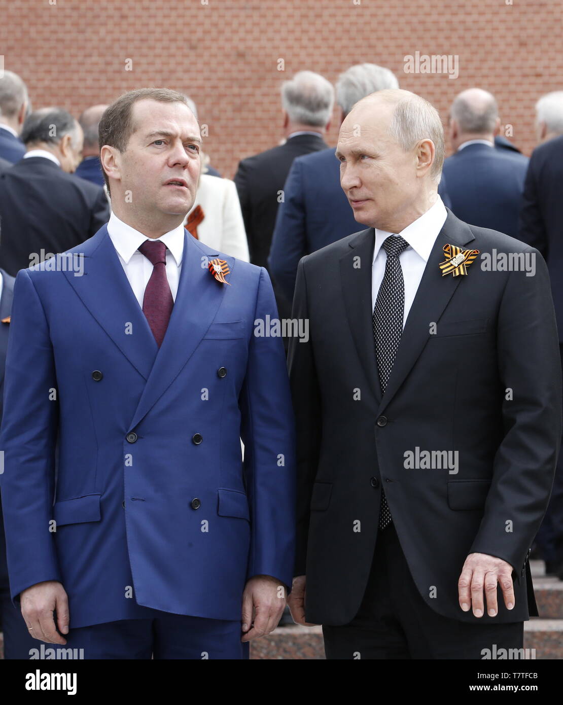 Moscow Russia 09th May 2019 Moscow Russia May 9 2019 Russia S Prime Minister Dmitry Medvedev L And Russia S President Vladimir Putin During A Ceremony To Lay Flowers At The Tomb Of