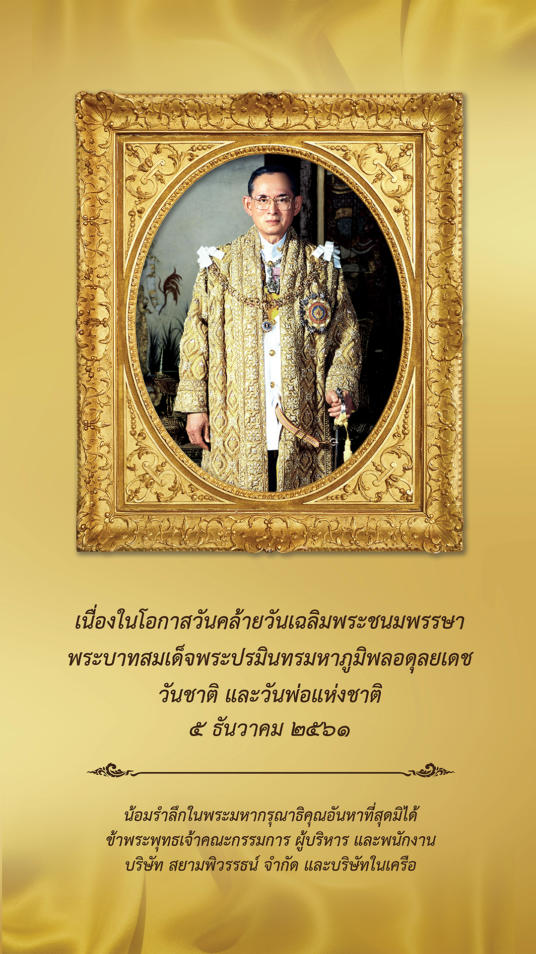 ขาพระพทธเจา คณะผบรหาร สมาชกสภา ขาราชการ ลกจาง. นอมรำลกในพระมหากรณาธคณหาทสดมได รชกาลท 9. เหลาดารารนใหญรวมโพสตนอมรำลกในพระมหากรณาธคณอนหาทสดมไดเนองในวน ๑๓ ตลาคม วนคลายวนสวรรคต.