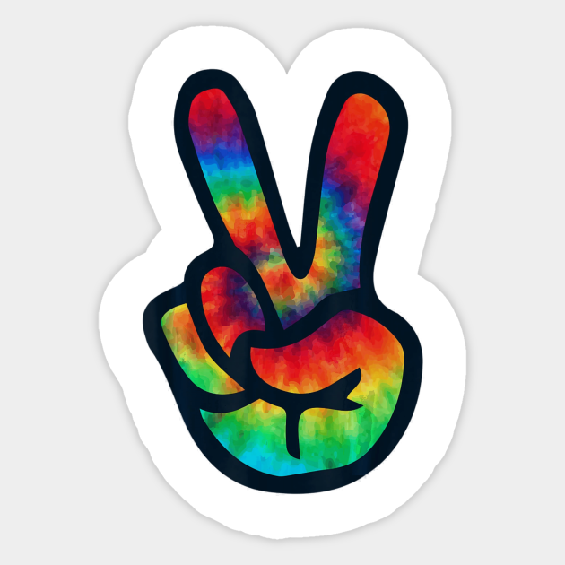 Tie Dye Peace Sign Hand Design V Symbol 60s 70s 80s Art Sticker by melsens. 53 oz 100 pre-shrunk cotton Double-needle coverseamed neck. Funny Hippie peace on earth Christmas Holidays Birthday.